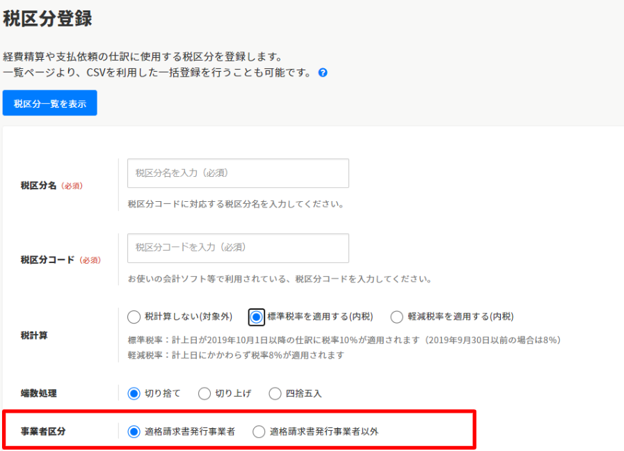 税区分マスタに「事業者区分」の項目を追加 ※2023年7月中旬リリース済み