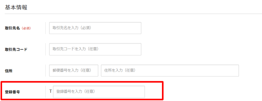 取引先マスタに「登録番号」項目を追加 ※2023年9月上旬リリース済み