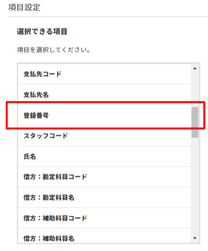 仕訳データ出力設定の選択できる項目に「登録番号」項目が追加されます。
