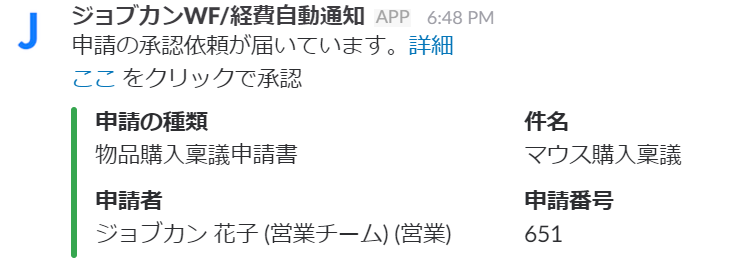ジョブカン経費精算/ワークフローでは、承認依頼メールやSlackで受け取る承認依頼通知に記載されたURLをクリックすることで、申請を承認することができます。