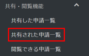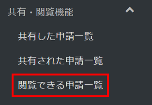 左側のメニュー「共有・閲覧機能」内、「閲覧できる申請一覧」をクリックして表示します。