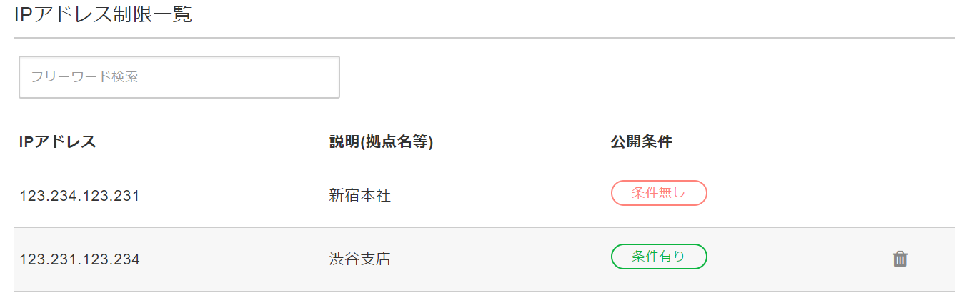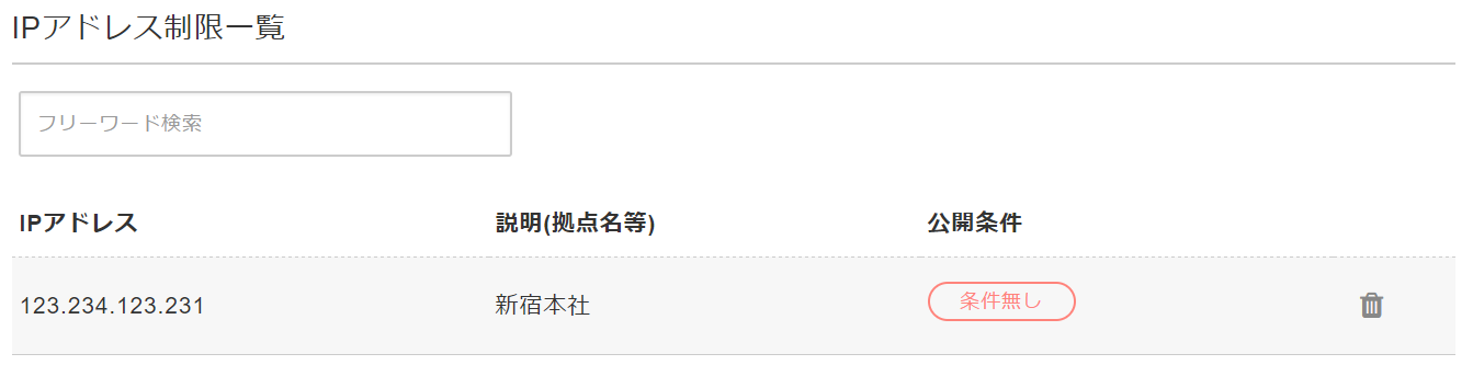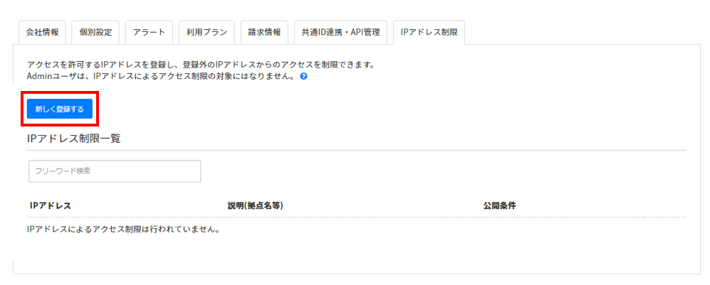 ※Admin権限のユーザは、IPアドレス制限の対象外です。
