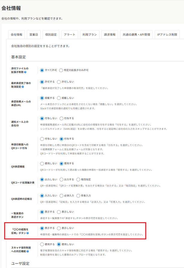 ※こちらの設定を行うと、会社全体に適用されます。