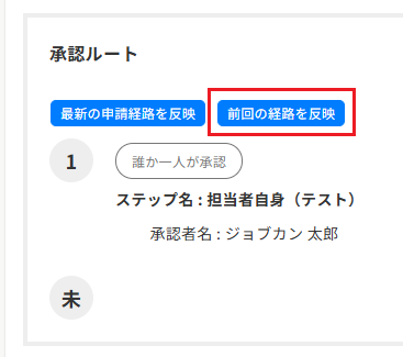 ※「最新の申請経路を反映」ボタンは本機能の対象外であり、常に表示されます。