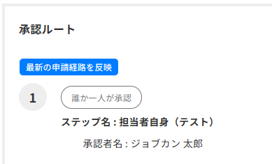 「表示する」選択時、申請の作成・編集時の承認ルート欄には、「○○の経路を反映」ボタンが表示されます。