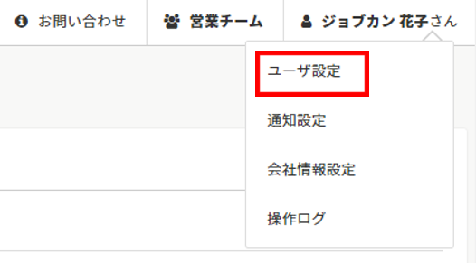2. 表示されたメニューから「ユーザ設定」をクリックします。
