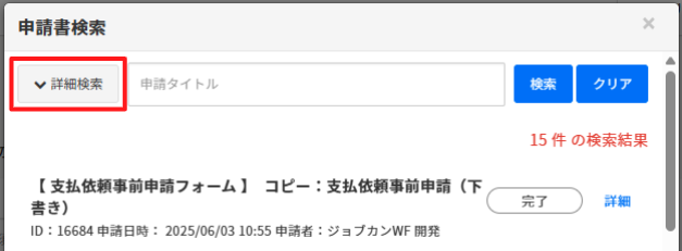 閲覧できる申請、共有された申請)も、事前申請として選択可能になります。