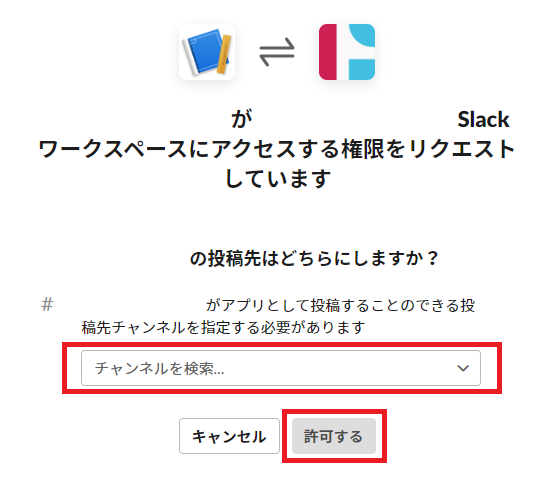 8. メッセージの投稿先チャンネルを選択し「許可する」をクリックします。
