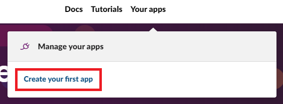 3. 「Your apps」にマウスオーバーし、表示される「Create your first app」をクリックします。